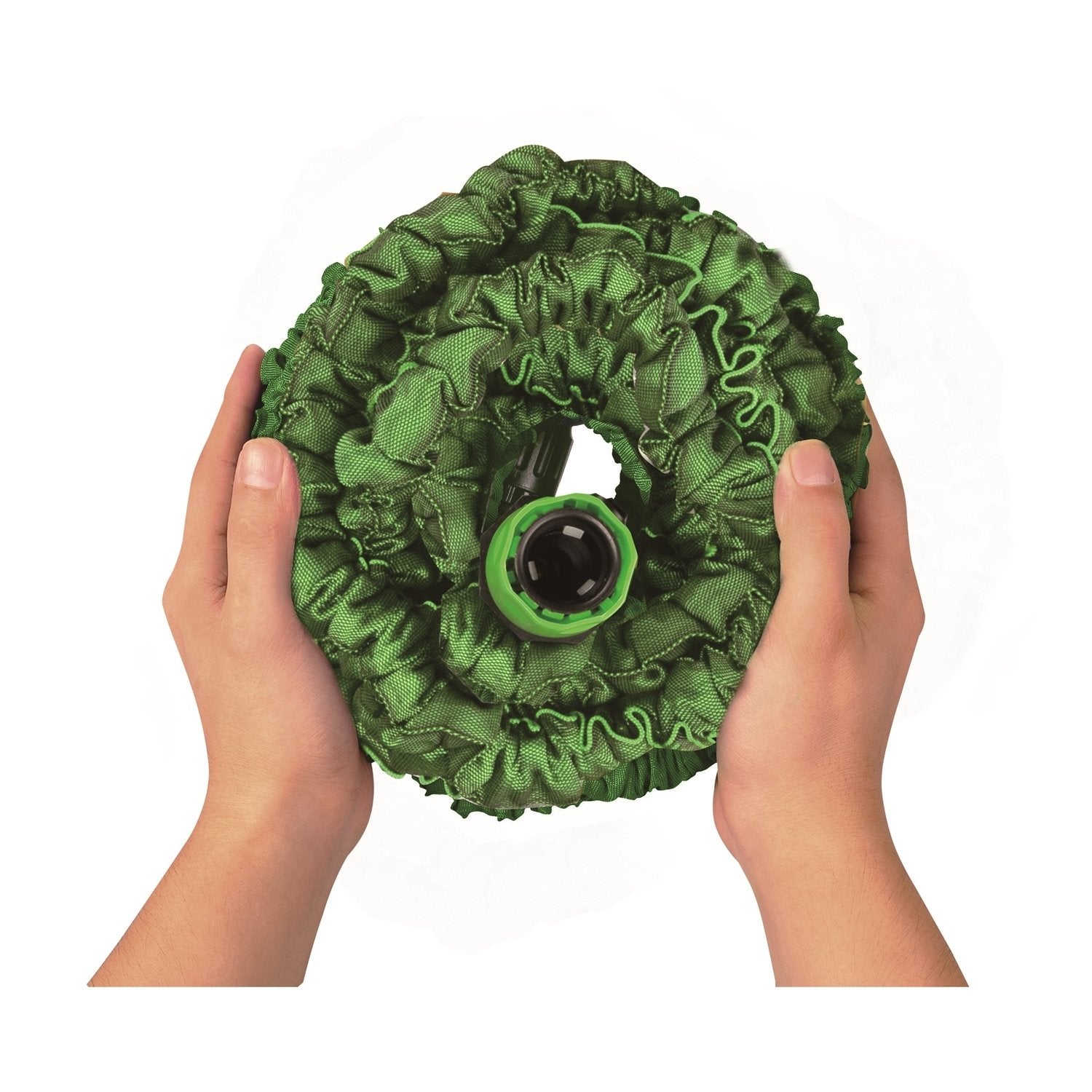Make watering simple with this expandable garden hose and multi-function spray gun. This hose automatically extends up to 150ft when in use, then contracts back to a compact 50ft for hassle-free storage. Designed to stay twist-, tangle-, and kink-free, it’s lightweight yet strong enough to handle all weather conditions. The durable metal connector ensures quick and secure attachment, while the included spray gun features multiple spray settings—perfect for watering plants, cleaning patios, or rinsing your car.